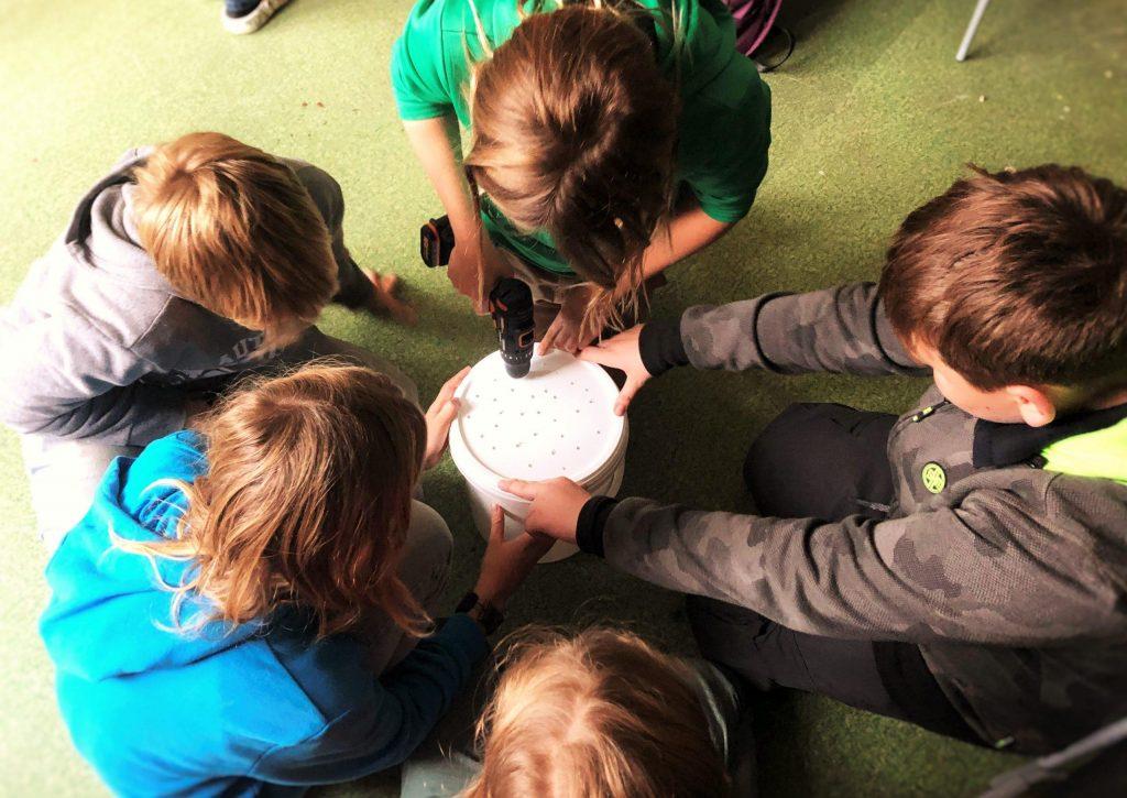 Jak snadno vznikne ze slupek a zbytků zeleniny výživný kompost se přesvědčili žáci pátých a šestých tříd ZŠ Angel v rámci dalšího z workshopů projektu Uzavřený cyklus jídla do škol. Pod naším vedením si vyrobili tři vermikompostéry, tedy “žížalí domečky”, kde se jim o proměnu odpadků v poklad postarají noví školní mazlíčci.